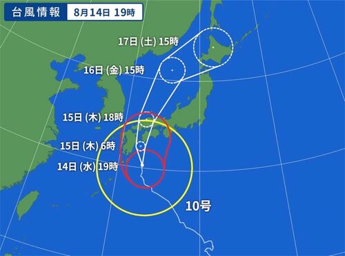 8月15日 Agorophius 史上初のサーキット「ようこそオタクパークへ」は台風の危険もありますが開催致します。 理由と注意事項等を記載するのでよーく守ってね! 台風進路はまずこんな感じ! 強風域にしか入らないよう、なんとか逸れてくれた…ありがとう。 と…